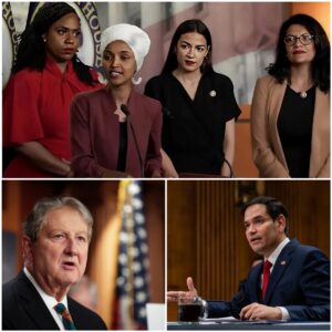 Washington has been thrown into chaos after Senator Marco Rubio unleashed his bombshell Born in America Act, a move that instantly disqualified 14 sitting lawmakers accused of holding dual citizenship and “divided allegiance.” The Capitol was rocked by the announcement, with stunned politicians and staffers scrambling to process the fallout. Rubio didn’t mince words as he took the podium, declaring, “This is LOYALTY. If you cheated your way into office — it’s OVER.” The chamber erupted in boos and shouts, but Rubio stood his ground, promising, “The Supreme Court will uphold this. Count on it.”
