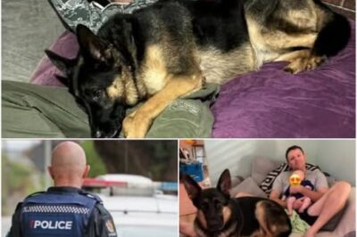 This is the heart-stopping moment a brave German Shepherd leapt into action to save a toddler from a terrifying dog…