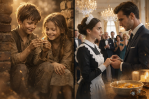 The one from the years before the money, before the empire, before the custom suits and private roads and headlines. The one who knew him when he was only a boy with bruised hands and nothing to offer except a ring he made himself out of salvaged wire and blue glass. The one who, in a world built to discard children like them, still chose to keep the ugliest, smallest proof that someone had once promised to come back.