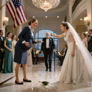 The servers had been moving in sequence along the edge of the ballroom, clearing glassware and repositioning for the bride and groom’s re-entry after photos. It had all been timed down to ridiculous precision—the music swell, the ballroom doors opening, the spotlight sweep, the guests turning, the service staff gliding backward like part of the décor.